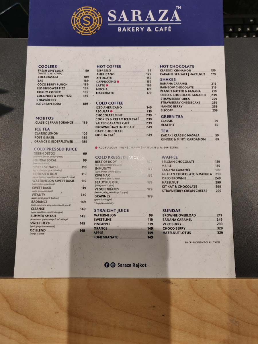 For those who cherish a hygienic and aesthetically pleasing environment, Saraza is truly a recommended spot. And as Arjun Sinh Jadeja eloquently notes, the satisfying experience is heightened by their artisanal coffee, expertly brewed to complement your pastries.